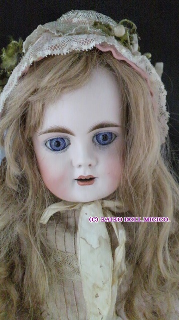 レアなモールドの上、えくぼもクッキリとあるきれいな子です。透明度の高いグラスアイには、くっきりと虹彩があります。綺麗なアイスブルーです。
